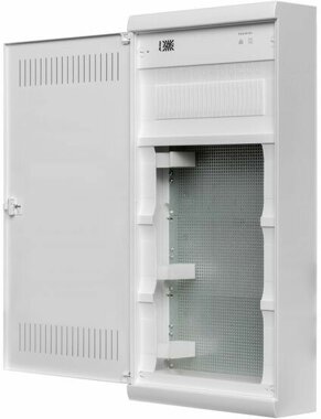 Multimedia-Kleinverteiler Aufputz, mit Lüftungstür. 1. Reihe Patch Panel für 12x Keystone Module . 2. - 4. Reihe Montageplatte gelocht, für Telekommunikations-Geräte,. 3-fach Schuko-Steckdose, . Lüftungstür oben und unten geschlitzt. Abmessungen B x H x T (mm) 300 x 370 x 106. TE je 18 mm 48/56. Reihen 2. Multimedia-Kleinverteiler Aufputz, mit Lüftungstür. Baureihe A..ATL / A..ATM. Schutzart: IP30. Verteiler-Bodenplatte aus Kunststoff, serienmäßig, sowie Vorprägungen für rückseitige und seitliche Leitungseinführungen . Vorprägungen für Kabelkanäle. Patch Panel 12-fach, aus Stahlblech. Farbton: RAL 9016 (verkehrsweiß). Gehäuse inkl. Tür (wahlweise mit Lüftungstür Typ ..TL, Mediatür Typ ..TM oder Volltür für APZ-Anwendungen). Mit Montageplatte gelocht für Telekommunikations-Geräte. Mit 3-fach Schuko-Steckdose. Mit Kabelabfangschiene zur Fixierung der Zu- und Abgangsleitungen. Mit Kabelhalter. Baureihe A..APZ. DIN Hutschiene. RJ45-Buchse. Geschlossene Abdeckung und Volltür.