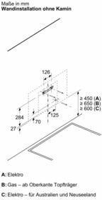 | Mindestabstand vom Gas-Kochfeld | 60 cm |