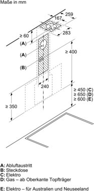 - Gerätemaße Abluft (HxBxT): 883-1126 x 790 x 433 mm