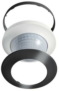 Abdeck-Set in schwarz bestehend aus Abdeckblende und Designring für viele Decken-Bewegungsmelder der Serie COMPACT und Decken-Präsenzmelder der Serie COMPACT.