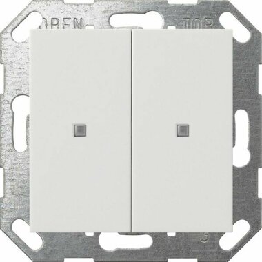 KNX Taster, Wippe 2fach System 55 Reinweiß glänzend Merkmale: KNX Taster mit integriertem Busankoppler. Integrierter Temperatursensor. Wippen- oder Tastenfunktion für jede Bedienfläche einstellbar. Steuerung von bis zu vier Funktionen über die Tastenfunktion des KNX Tasters möglich. Bedienfunktionen: Bedienkonzept Tasten- oder Wippenfunktion ist parametrierbar. Schalten, Dimmen und Farbtemperatur, Farbsteuerung und Helligkeit, Jalousie, Wertgeber, Szenennebenstelle, 2-Kanal-Bedienung und Reglernebenstelle. Schalten: Der Befehl beim Drücken und oder Loslassen ist einstellbar (Keine Reaktion, Einschalten, Ausschalten, Umschalten). Dimmen und Farbtemperatur: Helligkeit und oder Farbtemperatur, der Befehl beim Drücken, die Zeit zwischen Schalten und Dimmen, das Dimmen in verschiedenen Stufen, die Telegrammwiederholung bei langer Betätigung und das Senden eines Stopptelegramms bei Ende der Betätigung ist einstellbar. Farbsteuerung und Helligkeit: Farbkreisdurchlauf oder Helligkeitsverstellung, der Befehl beim Drücken, die Zeit zwischen Schalten und Dimmen, der Startwert, die Schrittweite und die Zeit zwischen zwei Telegrammen ist einstellbar. Jalousie: Der Befehl beim Drücken und das Bedienkonzept ist einstellbar. Das Bedienkonzept kann in den Zeiten für kurze und lange Betätigung und Lamellenverstellung angepasst werden. Wertgeber: Die Funktionsweise (1 Byte, 2 Byte, 3 Byte oder 6 Byte Wertgeber) und der Wert ist einstellbar. Szenennebenstelle: Die Funktionsweise (ohne oder mit Speicherfunktion) und die Szenennummer ist einstellbar. 2-Kanal-Bedienung: Durch einen Tastendruck können bis zu zwei Telegramme auf den KNX ausgesendet werden. Das Bedienkonzept kann eingestellt und die Zeit für kurze und lange Betätigung angepasst werden. Die Funktionsweise der Kanäle ist getrennt voneinander einstellbar. Reglernebenstelle: Die Funktionsweise (Betriebsmodusumschaltung, Zwang-Betriebsmodusumschaltung, Präsenzfunktion und Sollwertverschiebung) ist einstellbar. Sperrfunktion zum Sperren von einzelnen Tasten bzw. Wippen. Reglernebenstellen-Eigenschaften: Die Reglernebenstelle ist als Funktion einer Wippe bzw. Taste parametrierbar. Steuerung eines Raumtemperaturreglers (Betriebsmodi, Präsenzfunktion und Sollwertverschiebung). Auswertung des Reglerzustandes über die Status-LED. Temperaturmessung ist aktivierbar. Messung der Raumtemperatur mit internen Fühler oder optional durch eine Messwertbildung der intern gemessenen Temperatur mit einer externen Temperatur. Funktionen der Status-LED: Die Funktionsauswahl erfolgt je Status-LED. Folgende Funktionen sind parametrierbar: immer AUS, immer EIN, Betätigungsanzeige, Telegrammquittierung, Statusanzeige, Ansteuerung über separates LED-Objekt, Betriebsmodusanzeige, Anzeige Reglerstatus, Anzeige Präsenzstatus und Anzeige Sollwertverschiebung. Farbe ist parametrierbar. Die Farbauswahl erfolgt entweder gemeinsam für alle Status-LED oder getrennt für jede Status-LED des Gerätes. Die Status-LED können wahlweise rot, grün oder blau leuchten. Die Helligkeit der Status-LED ist in fünf Stufen einstellbar. Mit der Nachtabsenkung kann die Helligkeit der Status-LED in den Nachtstunden über Kommunikationsobjekt reduziert werden. Hinweise : KNX Data Secure kompatibel. Firmware-Updates sind mit der Gira ETS Service-App (Zusatzsoftware) möglich. Bei Verwendung von Gira TX_44, Adapterrahmen IP20 und Abdeckung aus dem System 55 verwenden. Die Wippen sind optional gegen alternative Varianten austauschbar.