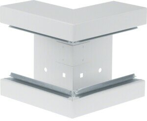Außeneck aus Grundprofil zu BRS 68x130mm Oberteil 80mm Stahlblech verkehrsweiß. Außeneck aus Grundprofil als Formteil zu Brüstungskanal.