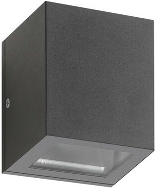 Up- und Down Wandleuchte Typ 5004, pulverbeschichtete Leuchte aus Aluminium-Druckguss, graphitfarben, Diffusor aus Floatglas, zweiseitiger Lichtaustritt, HxBxT 100 x 90 x 90, 1x G9 max. 33 Watt, ohne Leuchtmittel, IP54, 220-240 V 50/60 Hz