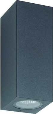 Pulverbeschichtete Up and Down Wandleuchte aus Aluminium-Druckguss, graphit, Diffusor aus Floatglas, ohne Leuchtmittel, 2x GU10, max 7 W, IP54, BxHxT 70x165x80 mm
