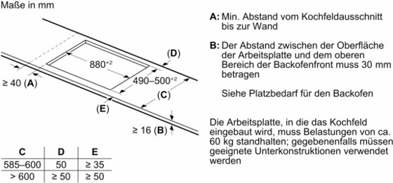 - Erforderliche Nischengröße (HxBxT mm): 51 x 880 x (490 - 500)