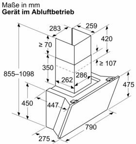 - Gerätemaße Abluft (HxBxT): 855-1098 x 790 x 447 mm