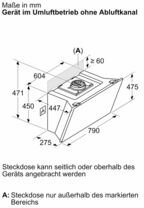 - Abmessungen Umluftinstallation, kaminlos (HxBxT): 471 mm x 790 mm x 447 mm