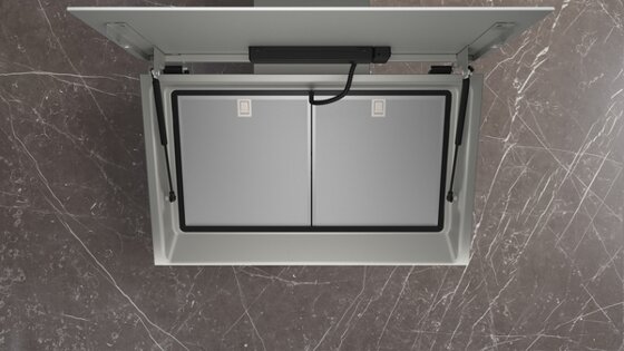 - Extrem großer Öffnungswinkel für eine leichte Zugänglichkeit der Filter und eine einfache Reinigung.