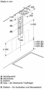 | Höhe Kamin Abluft min. | 550mm |