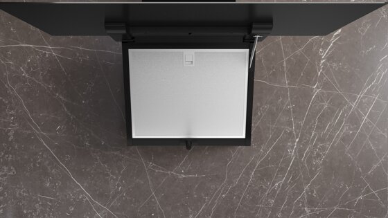 - Großer Öffnungswinkel der Glasplatte mit Arretierungsfunktion für eine einfache Filterzugänglichkeit und leichte Reinigung.