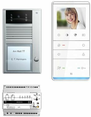 Vorkonfiguriertes Paket für 1 Wohneinheit für den TCS:BUS bestehend aus: 1x Außenstation VPAK Color V2D 1Taste AP EN, Artikelnummer: AVC12010-0010, vorprogrammiert, 1x TASTA V2D 3,5 Zoll Freispr. AP WS/WS, Artikelnummer: IVW5211-0145, 1x Video-2-Draht:BUS Versorgungsgerät, Artikelnummer: NVV1000-0400, Das Paket ist ab Werk vorkonfiguriert und bedingt erweiterbar, Die Funktionen der Innen- und Außenstationen können mit TCS-Serviceprodukten bedingt verändert werden, Die Komponenten unterstützen einen stand-alone-Betrieb
