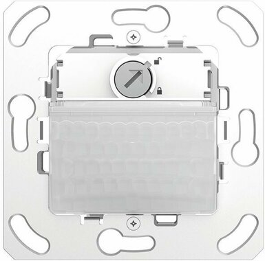 Passiv-Infrarot-Bewegungs-/Präsenzmelder für UP-Wandmontage, Slave-Version, ohne Abdeckrahmen, Abdeckrahmen zur Integration in gängige Schalterprogramme als Zubehör erhältlich, halbrunder Erfassungsbereich 170° bis zu 14x17 m, Einschränkung des Erfassungsbereichs möglich, Integrierter Taster (blockierbar)