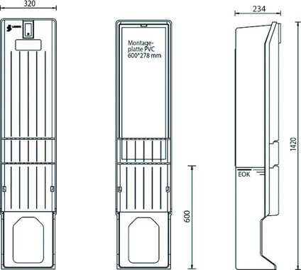Verteilersäule für Freiluftaufstellung mit Sockel, Stecktür mit profilierter Oberfläche, Kabelabfangschiene, Riegelschloss und plombierbares Schlüsselschild mit Profilhalbzylinder 40 mm, eine Montageplatte aus PVC (5 mm), lichtgrau, RAL 7035