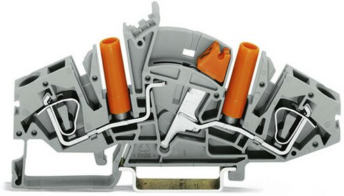 2-Leiter-Trenn- und Messklemme; längs schaltbar; mit berührungssicheren Prüfbuchsen; für Prüfstecker Ø 4 mm; für Tragschiene 35 x 15 und 35 x 7,5; 6 mm²; CAGE CLAMP®; 6,00 mm²; grau