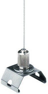 Seilabhängung für eine werkzeuglose Verbindung der Tragschiene mittels CLIX-Technik. Befestigungsfeder aus nicht rostendem Federstahl V2A. Maximale Zugbelastung 30 kg. Abmessungen: 2 x 2 x 2000 mm, Gewicht: 0,8 kg